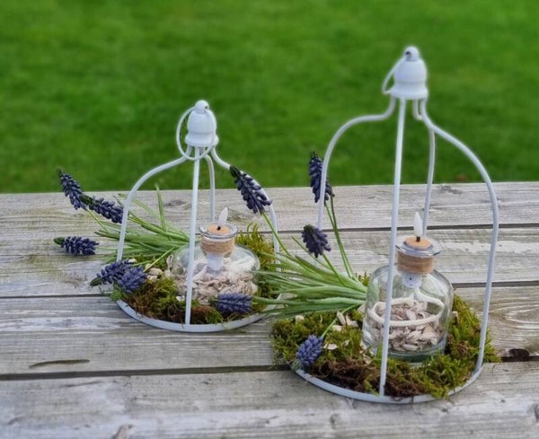 Set van 2 vogelkooien in wit metaal.