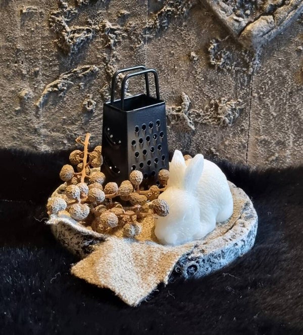 In combinatie met een beton schaaltje, zwart raspje en klein stukje shabby doek