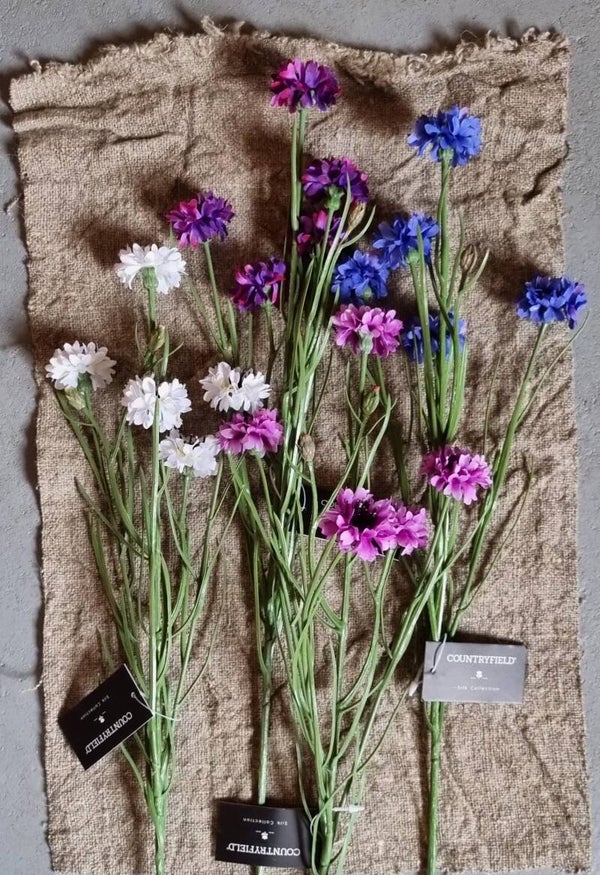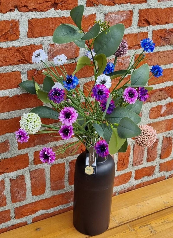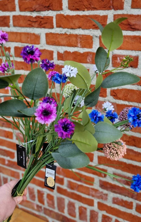 Set bestaat uit 3 verschillende allium, 4 verschillende korenbloemen en een groene tak.