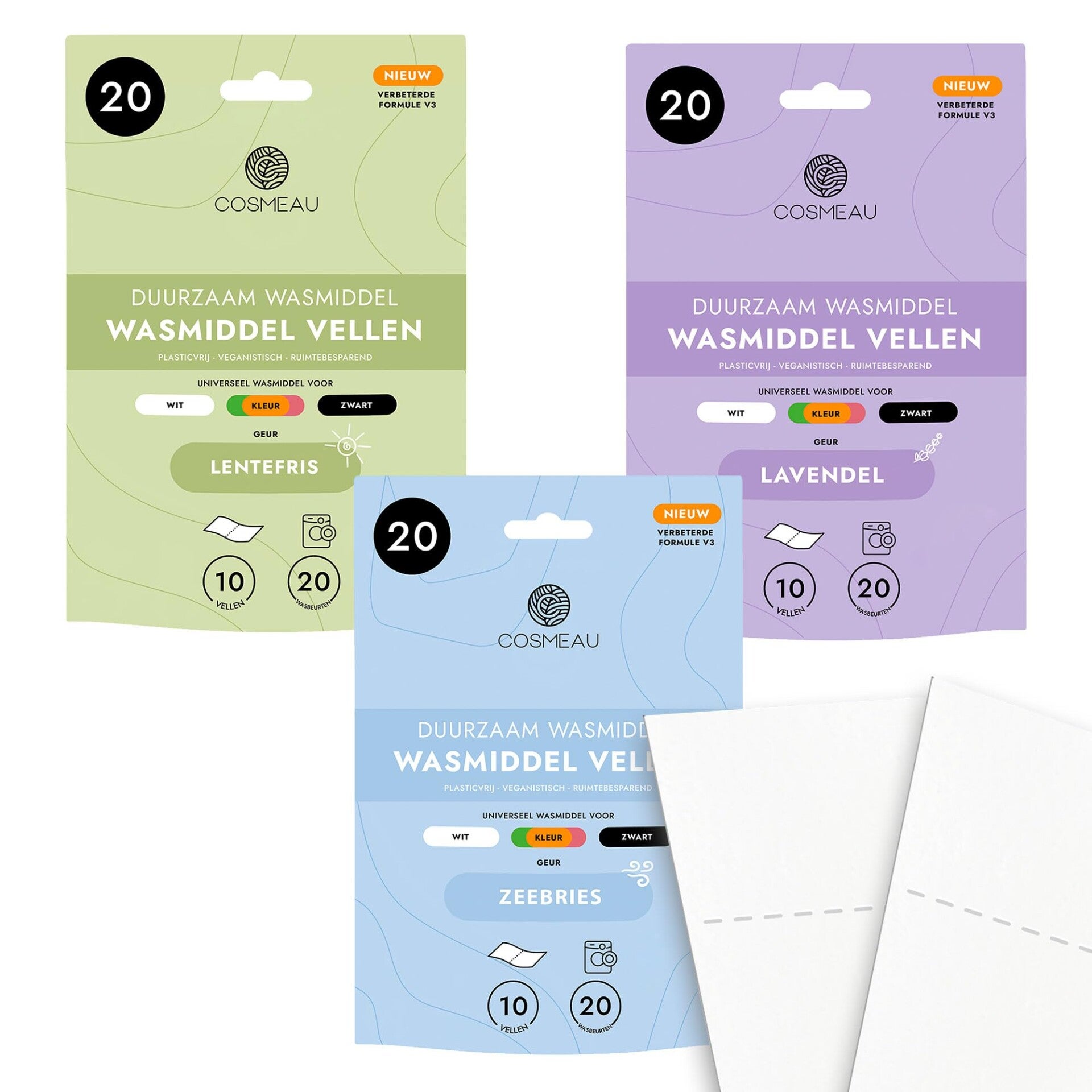 Proefpakket met 3 heerlijke geuren, Spring, Sea Breeze en Lavender. Van elke geur 20 wasstrips.