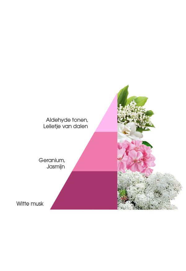 Heerlijke geurmix van lelietje van dalen, geranium, jasmijn en witte musk.