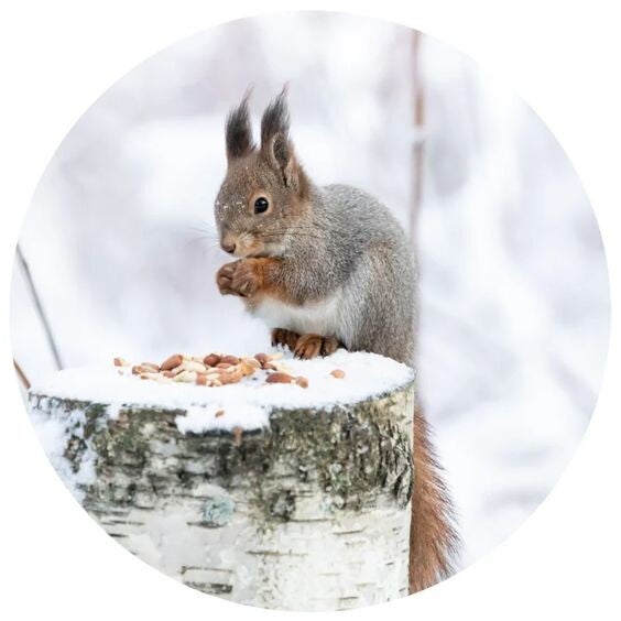 Serene uitstraling van deze eekhoorn in winterse landschap.